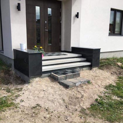 Наилучшее решение - использовать камень гранит. Плиты, изготовленные именно из этой породы выдержат нагрузки которые будут оказыватся на крыльцо и лестницу в течении всего времени эксплуатации.